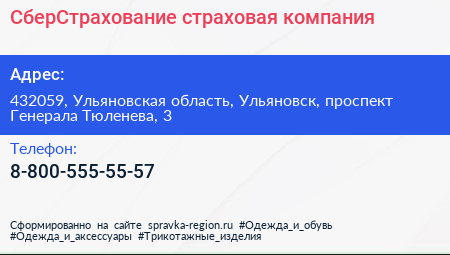 СберСтрахование, страховая компания по адресу 432059, Ульяновская область, Ульяновск, проспект Генерала Тюленева, 3 в дальнейшем Организация, размещена в следующих категориях: