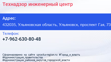 Технадзор, инженерный центр по адресу 432035, Ульяновская область, Ульяновск, проспект Гая, 73 в дальнейшем Организация, размещена в следующих категориях: