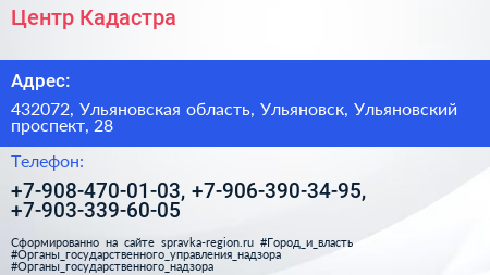 Центр Кадастра по адресу 432072, Ульяновская область, Ульяновск, Ульяновский проспект, 28 в дальнейшем Организация, размещена в следующих категориях: