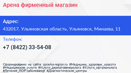 Арена, фирменный магазин по адресу 432017, Ульяновская область, Ульяновск, Минаева, 11 в дальнейшем Организация, размещена в следующих категориях: