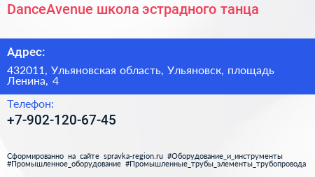 DanceAvenue, школа эстрадного танца по адресу 432011, Ульяновская область, Ульяновск, площадь Ленина, 4 в дальнейшем Организация, размещена в следующих категориях: