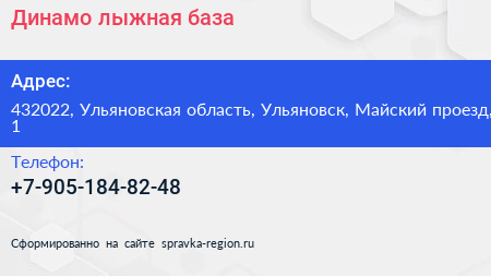 Динамо, лыжная база по адресу 432022, Ульяновская область, Ульяновск, Майский проезд, 1 в дальнейшем Организация, размещена в следующих категориях: