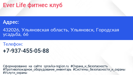 Ever Life, фитнес-клуб по адресу 432026, Ульяновская область, Ульяновск, Городская усадьба, 66 в дальнейшем Организация, размещена в следующих категориях: