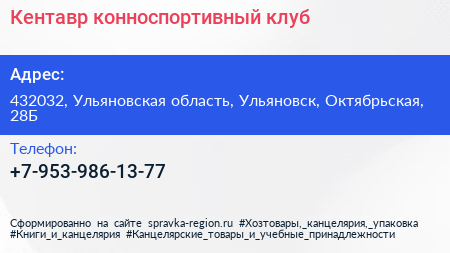 Кентавр, конноспортивный клуб по адресу 432032, Ульяновская область, Ульяновск, Октябрьская, 28Б в дальнейшем Организация, размещена в следующих категориях: