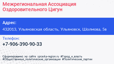 Межрегиональная Ассоциация Оздоровительного Цигун по адресу 432013, Ульяновская область, Ульяновск, Шолмова, 5в в дальнейшем Организация, размещена в следующих категориях: