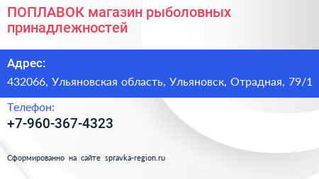 ПОПЛАВОК, магазин рыболовных принадлежностей по адресу 432066, Ульяновская область, Ульяновск, Отрадная, 79/1 в дальнейшем Организация, размещена в следующих категориях: