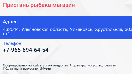 Пристань рыбака, магазин по адресу 432044, Ульяновская область, Ульяновск, Хрустальная, 30а ст1 в дальнейшем Организация, размещена в следующих категориях: