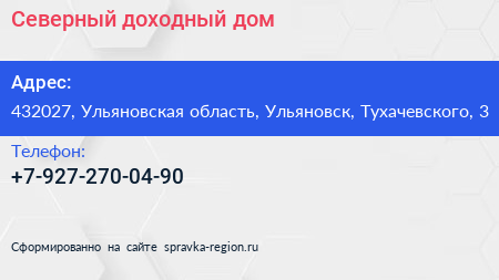 Северный, доходный дом по адресу 432027, Ульяновская область, Ульяновск, Тухачевского, 3 в дальнейшем Организация, размещена в следующих категориях: