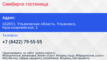 Симбирск, гостиница по адресу 432011, Ульяновская область, Ульяновск, Красноармейская, 2 в дальнейшем Организация, размещена в следующих категориях: