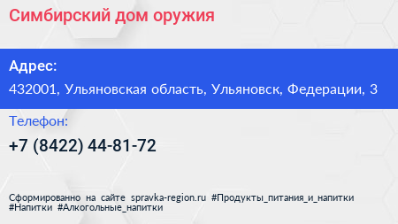 Симбирский дом оружия по адресу 432001, Ульяновская область, Ульяновск, Федерации, 3 в дальнейшем Организация, размещена в следующих категориях: