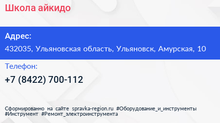 Школа айкидо по адресу 432035, Ульяновская область, Ульяновск, Амурская, 10 в дальнейшем Организация, размещена в следующих категориях: