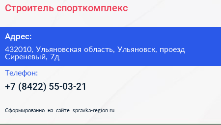 Строитель, спорткомплекс по адресу 432010, Ульяновская область, Ульяновск, проезд Сиреневый, 7д в дальнейшем Организация, размещена в следующих категориях: