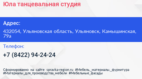 Юла, танцевальная студия по адресу 432054, Ульяновская область, Ульяновск, Камышинская, 79а в дальнейшем Организация, размещена в следующих категориях: