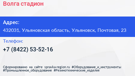 Волга, стадион по адресу 432031, Ульяновская область, Ульяновск, Почтовая, 23 в дальнейшем Организация, размещена в следующих категориях: