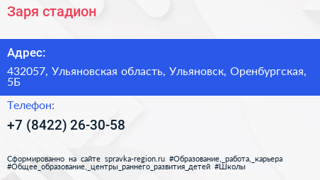 Заря, стадион по адресу 432057, Ульяновская область, Ульяновск, Оренбургская, 5Б в дальнейшем Организация, размещена в следующих категориях: