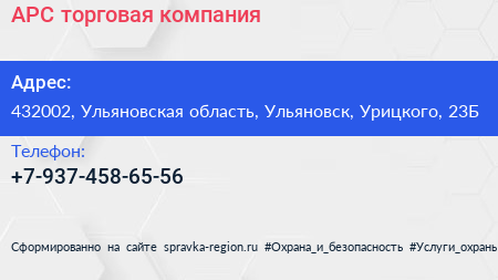 АРС, торговая компания по адресу 432002, Ульяновская область, Ульяновск, Урицкого, 23Б в дальнейшем Организация, размещена в следующих категориях: