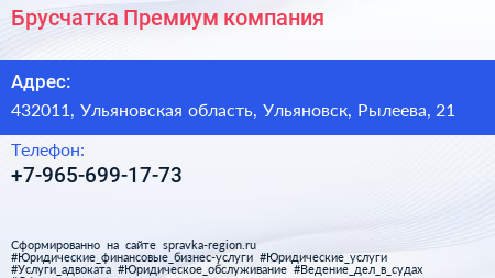 Брусчатка Премиум, компания по адресу 432011, Ульяновская область, Ульяновск, Рылеева, 21 в дальнейшем Организация, размещена в следующих категориях: