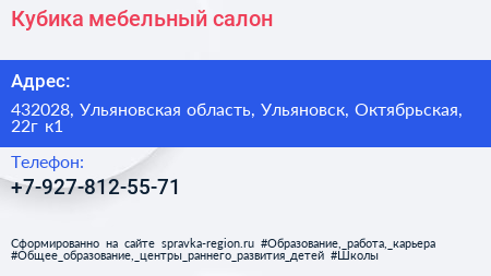 Кубика, мебельный салон по адресу 432028, Ульяновская область, Ульяновск, Октябрьская, 22г к1 в дальнейшем Организация, размещена в следующих категориях: