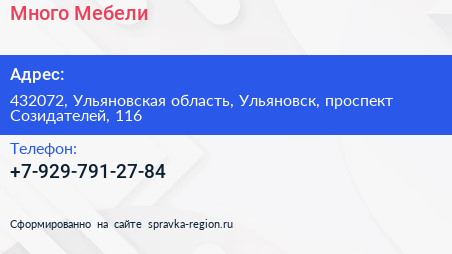 Много Мебели по адресу 432072, Ульяновская область, Ульяновск, проспект Созидателей, 116 в дальнейшем Организация, размещена в следующих категориях: