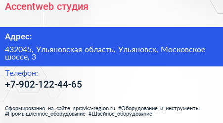 Accentweb, студия по адресу 432045, Ульяновская область, Ульяновск, Московское шоссе, 3 в дальнейшем Организация, размещена в следующих категориях: