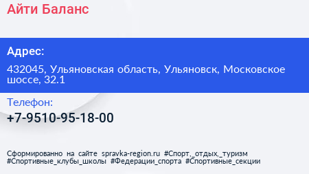 Айти Баланс по адресу 432045, Ульяновская область, Ульяновск, Московское шоссе, 32.1 в дальнейшем Организация, размещена в следующих категориях: