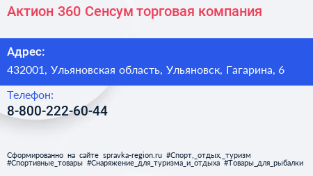 Актион 360 Сенсум, торговая компания по адресу 432001, Ульяновская область, Ульяновск, Гагарина, 6 в дальнейшем Организация, размещена в следующих категориях: