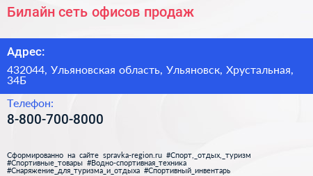 Билайн, сеть офисов продаж по адресу 432044, Ульяновская область, Ульяновск, Хрустальная, 34Б в дальнейшем Организация, размещена в следующих категориях: