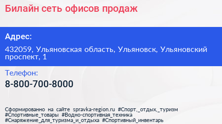 Билайн, сеть офисов продаж по адресу 432059, Ульяновская область, Ульяновск, Ульяновский проспект, 1 в дальнейшем Организация, размещена в следующих категориях:
