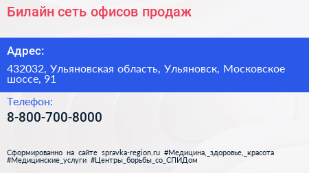 Билайн, сеть офисов продаж по адресу 432032, Ульяновская область, Ульяновск, Московское шоссе, 91 в дальнейшем Организация, размещена в следующих категориях: