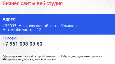 Бизнес сайты, веб-студия по адресу 432035, Ульяновская область, Ульяновск, Автомобилистов, 12 в дальнейшем Организация, размещена в следующих категориях: