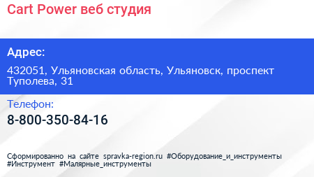 Cart-Power, веб-студия по адресу 432051, Ульяновская область, Ульяновск, проспект Туполева, 31 в дальнейшем Организация, размещена в следующих категориях: