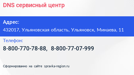DNS, сервисный центр по адресу 432017, Ульяновская область, Ульяновск, Минаева, 11 в дальнейшем Организация, размещена в следующих категориях: