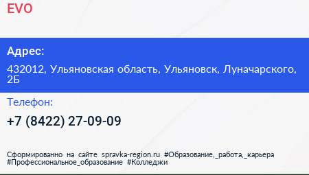 EVO по адресу 432012, Ульяновская область, Ульяновск, Луначарского, 2Б в дальнейшем Организация, размещена в следующих категориях: