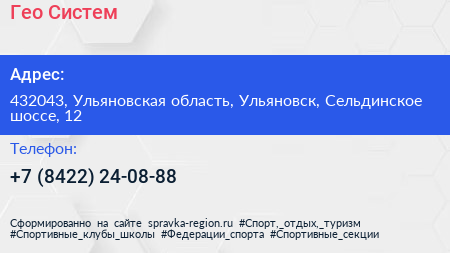 Гео Систем по адресу 432043, Ульяновская область, Ульяновск, Сельдинское шоссе, 12 в дальнейшем Организация, размещена в следующих категориях: