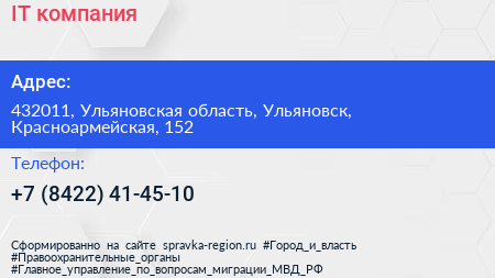 IT-компания по адресу 432011, Ульяновская область, Ульяновск, Красноармейская, 152 в дальнейшем Организация, размещена в следующих категориях: