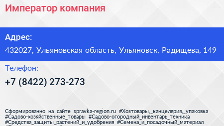 Император, компания по адресу 432027, Ульяновская область, Ульяновск, Радищева, 149 в дальнейшем Организация, размещена в следующих категориях: