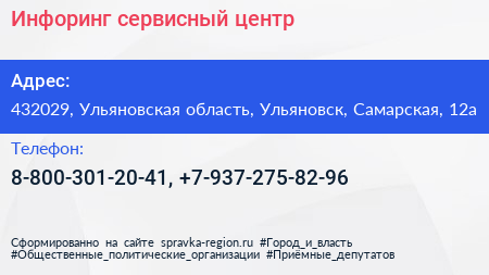 Инфоринг, сервисный центр по адресу 432029, Ульяновская область, Ульяновск, Самарская, 12а в дальнейшем Организация, размещена в следующих категориях: