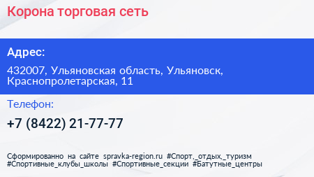 Корона, торговая сеть по адресу 432007, Ульяновская область, Ульяновск, Краснопролетарская, 11 в дальнейшем Организация, размещена в следующих категориях: