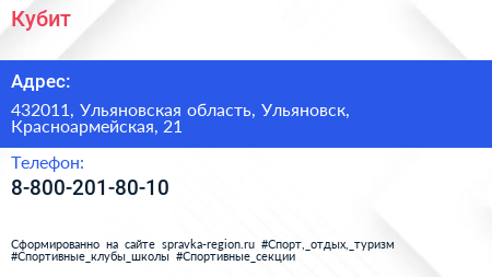 Кубит по адресу 432011, Ульяновская область, Ульяновск, Красноармейская, 21 в дальнейшем Организация, размещена в следующих категориях:
