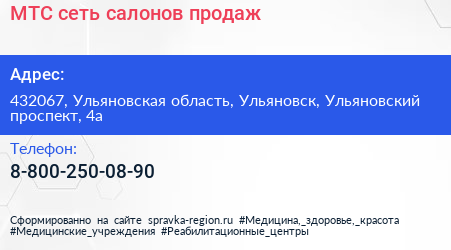 МТС, сеть салонов продаж по адресу 432067, Ульяновская область, Ульяновск, Ульяновский проспект, 4а в дальнейшем Организация, размещена в следующих категориях: