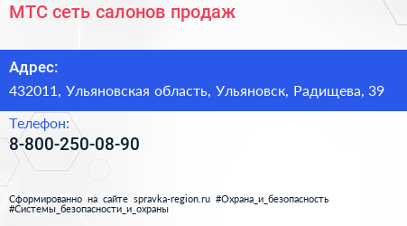 МТС, сеть салонов продаж по адресу 432011, Ульяновская область, Ульяновск, Радищева, 39 в дальнейшем Организация, размещена в следующих категориях: