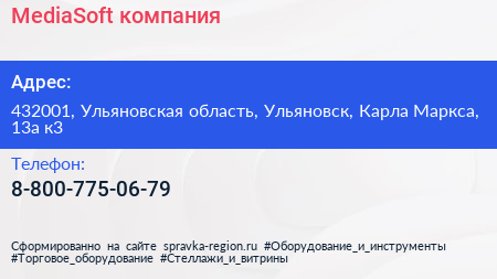 MediaSoft, компания по адресу 432001, Ульяновская область, Ульяновск, Карла Маркса, 13а к3 в дальнейшем Организация, размещена в следующих категориях: