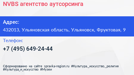 NVBS, агентство аутсорсинга по адресу 432013, Ульяновская область, Ульяновск, Фруктовая, 9 в дальнейшем Организация, размещена в следующих категориях: