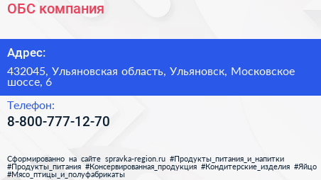 ОБС, компания по адресу 432045, Ульяновская область, Ульяновск, Московское шоссе, 6 в дальнейшем Организация, размещена в следующих категориях: