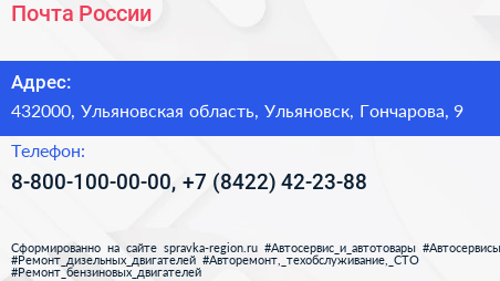 Почта России по адресу 432000, Ульяновская область, Ульяновск, Гончарова, 9 в дальнейшем Организация, размещена в следующих категориях: