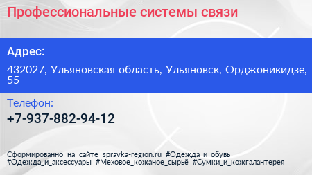 Профессиональные системы связи по адресу 432027, Ульяновская область, Ульяновск, Орджоникидзе, 55 в дальнейшем Организация, размещена в следующих категориях: