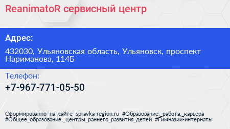 ReanimatoR, сервисный центр по адресу 432030, Ульяновская область, Ульяновск, проспект Нариманова, 114Б в дальнейшем Организация, размещена в следующих категориях: