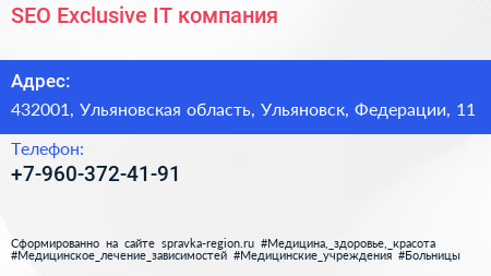SEO Exclusive, IT-компания по адресу 432001, Ульяновская область, Ульяновск, Федерации, 11 в дальнейшем Организация, размещена в следующих категориях:
