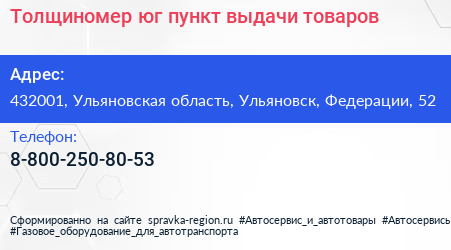 Толщиномер-юг, пункт выдачи товаров по адресу 432001, Ульяновская область, Ульяновск, Федерации, 52 в дальнейшем Организация, размещена в следующих категориях: