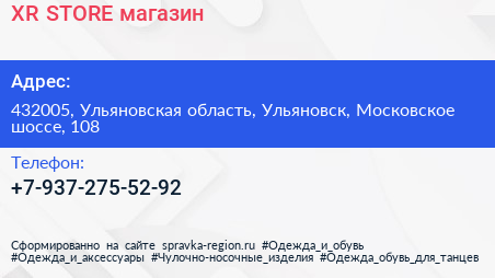 XR STORE, магазин по адресу 432005, Ульяновская область, Ульяновск, Московское шоссе, 108 в дальнейшем Организация, размещена в следующих категориях: